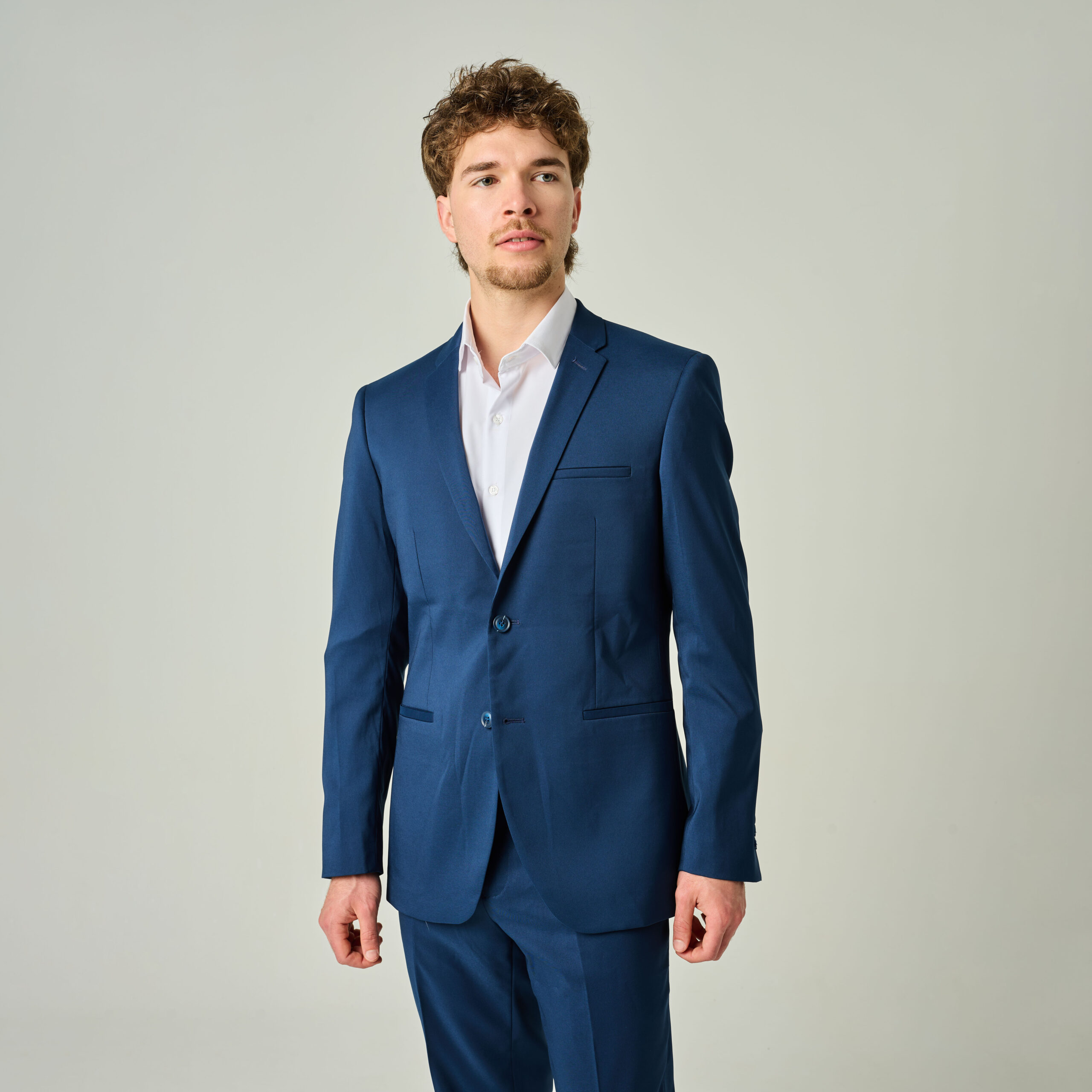 Conjunto ambo tela sintética que no se arruga. Color azul.