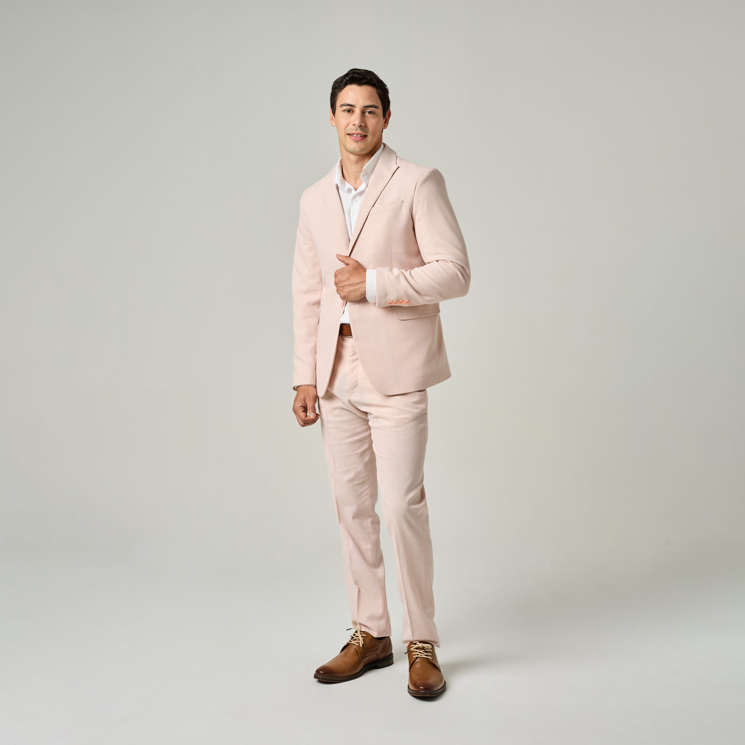 Conjunto ambo (chaqueta y pantalón).Tela de Lino. Color rosa.